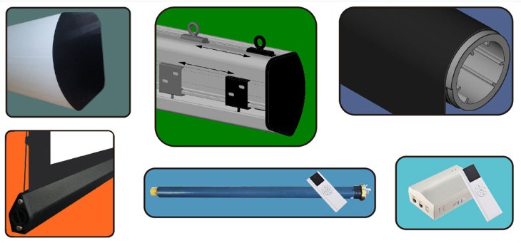 6. Standard with Remote Controller , the whole screen and the application height are preset by the remote. The effective control range can be up to 25 meters, with a combination of up, down and stop press can conduct all movement of the screen